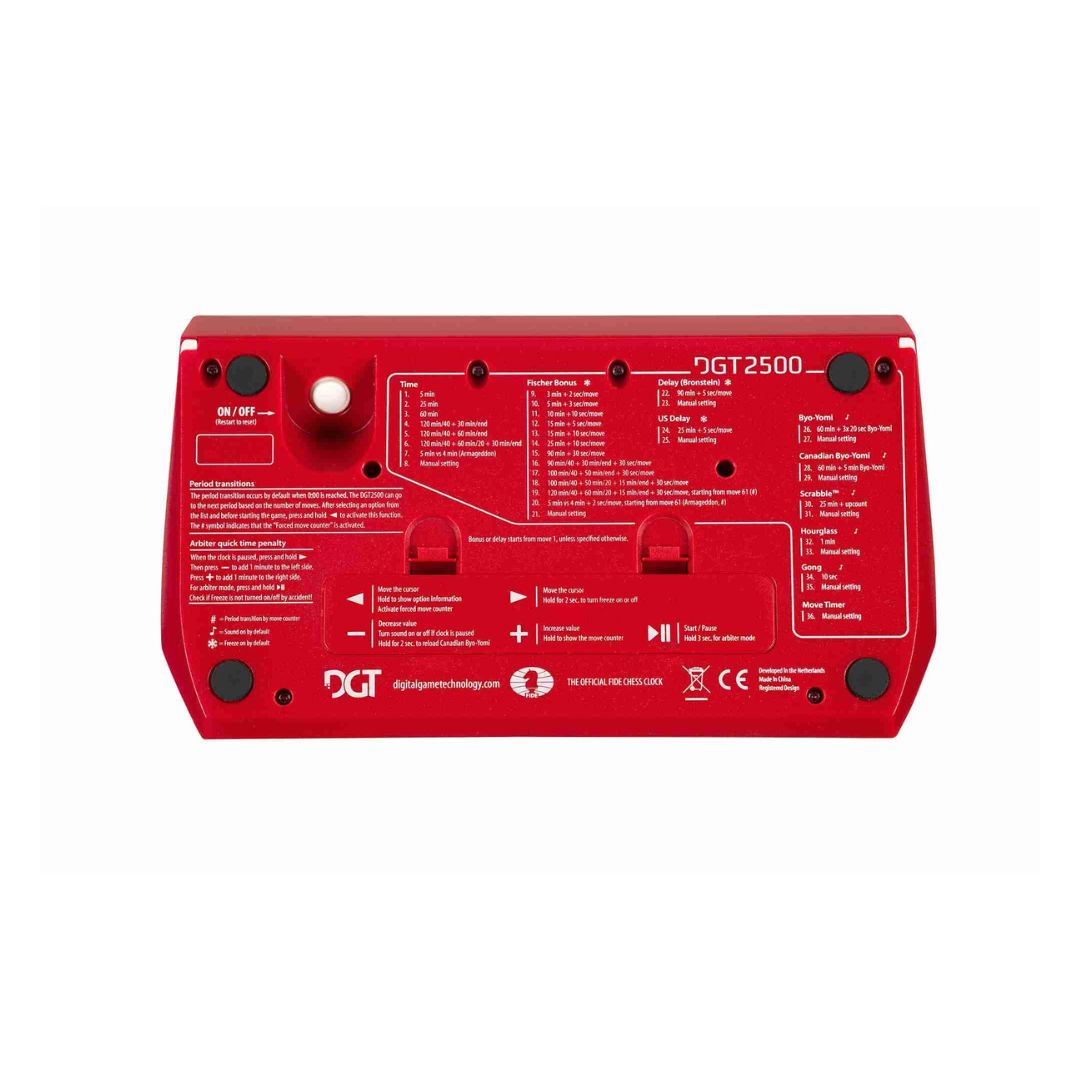 DGT 2500 är användarvänlig, så även nybörjare kan snabbt konfigurera den perfekta tidsinställningen. Klockan är godkänd av FIDE och uppfyller därför internationella standarder för turneringar och tävlingar. Den nya energieffektiva designen ger schackspelaren över 4000 timmars användning.