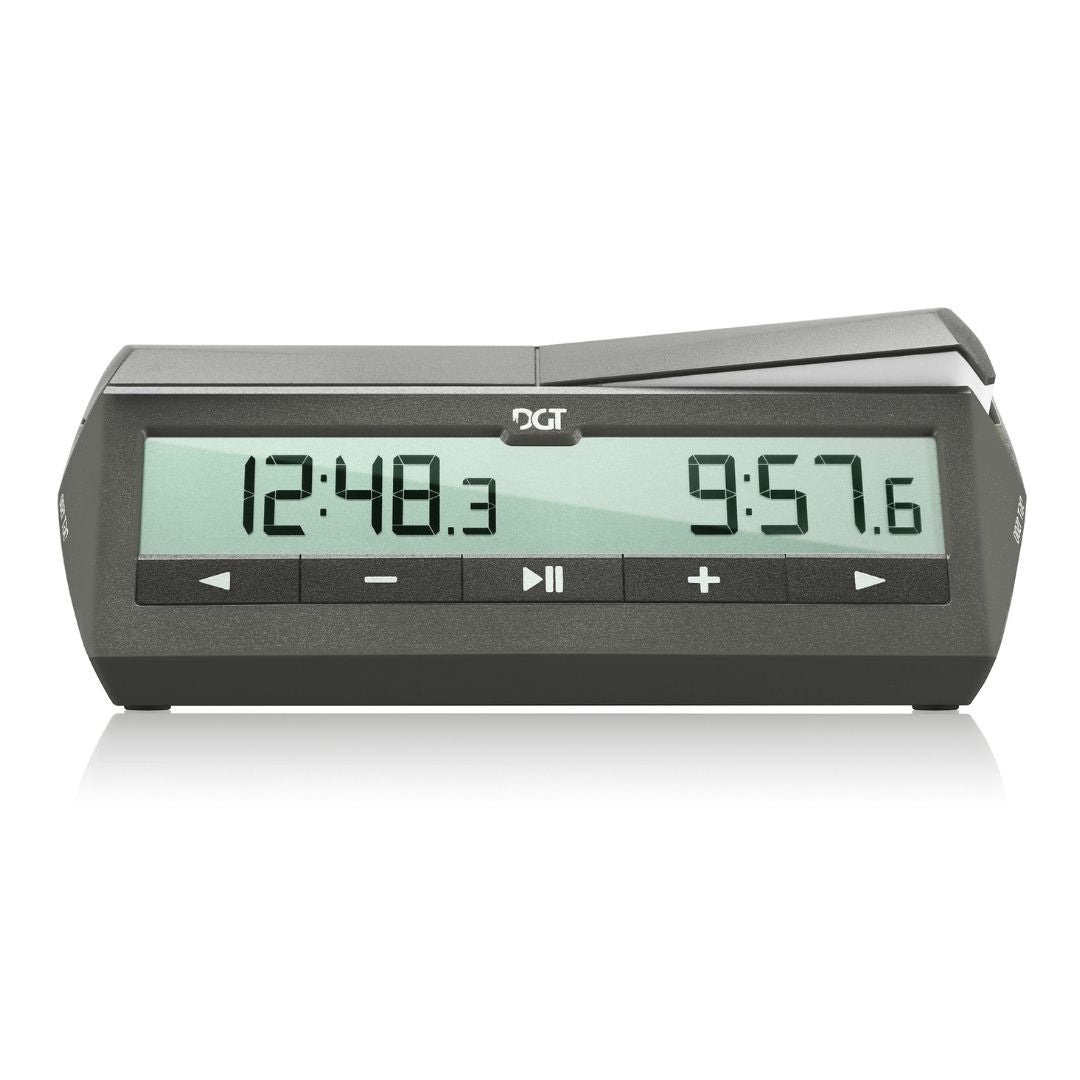 Den kompakta och ergonomiska designen gör schackklockan lätt att transportera, och den passar in i alla spelsituationer. Den specialdesignade DGT-typsnittet och den klara displayen säkerställer tydlig visning – även i hektiska slutspel. Klockan använder endast ett batteri och har en synlig knapp som är lätt att använda och ger en karakteristisk DGT-känsla.