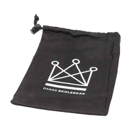 Bruna lyxiga schackpjäser med vacker fransk springare och svart schackpåse