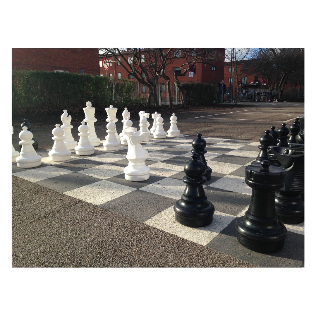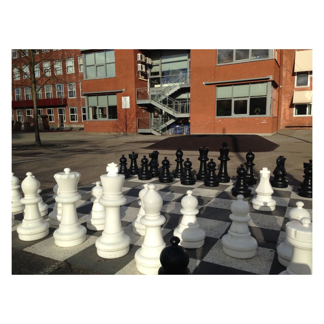 Uteschackpjäser/Jättechackpjäser i solid kvalitetsplast. Perfekt til skolgården, aulan, trädgården, campingen eller lekplatsen. Pjäserna säljs utan bräde.