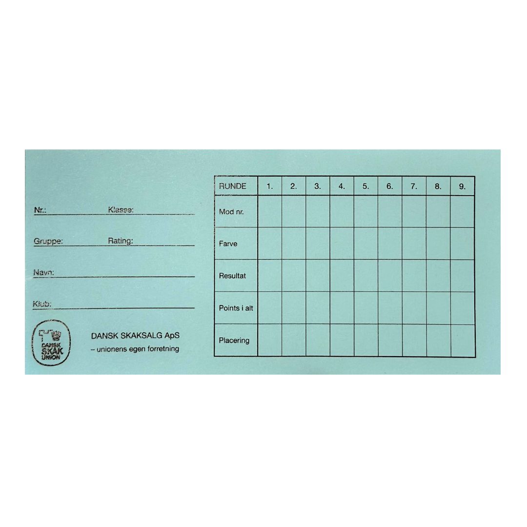 Rondkort i buntar om 100 st. Används för partier och turneringar, bland annat till att lotta Monrad upp till nio ronder. Finns i flera färger enligt anvisningarna.