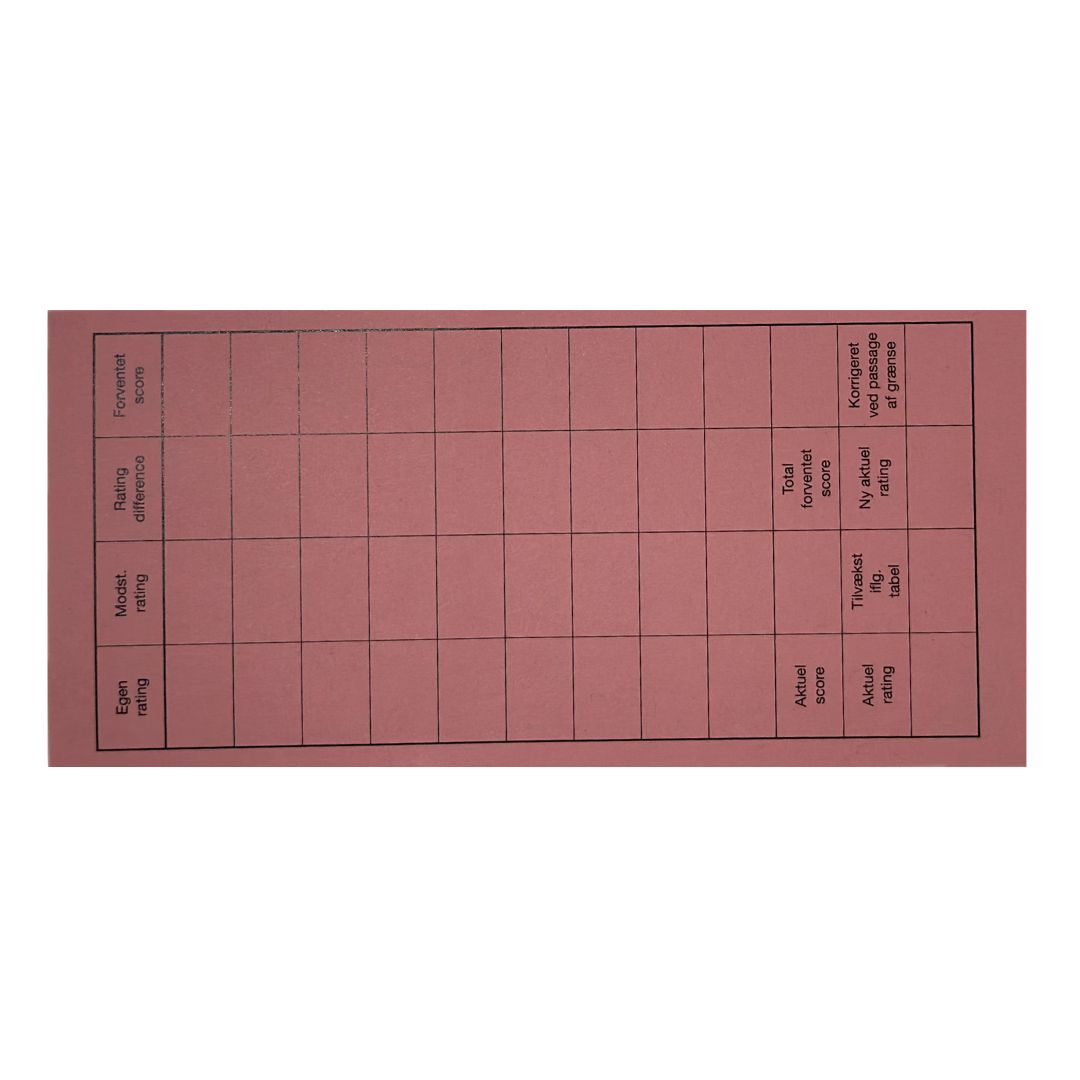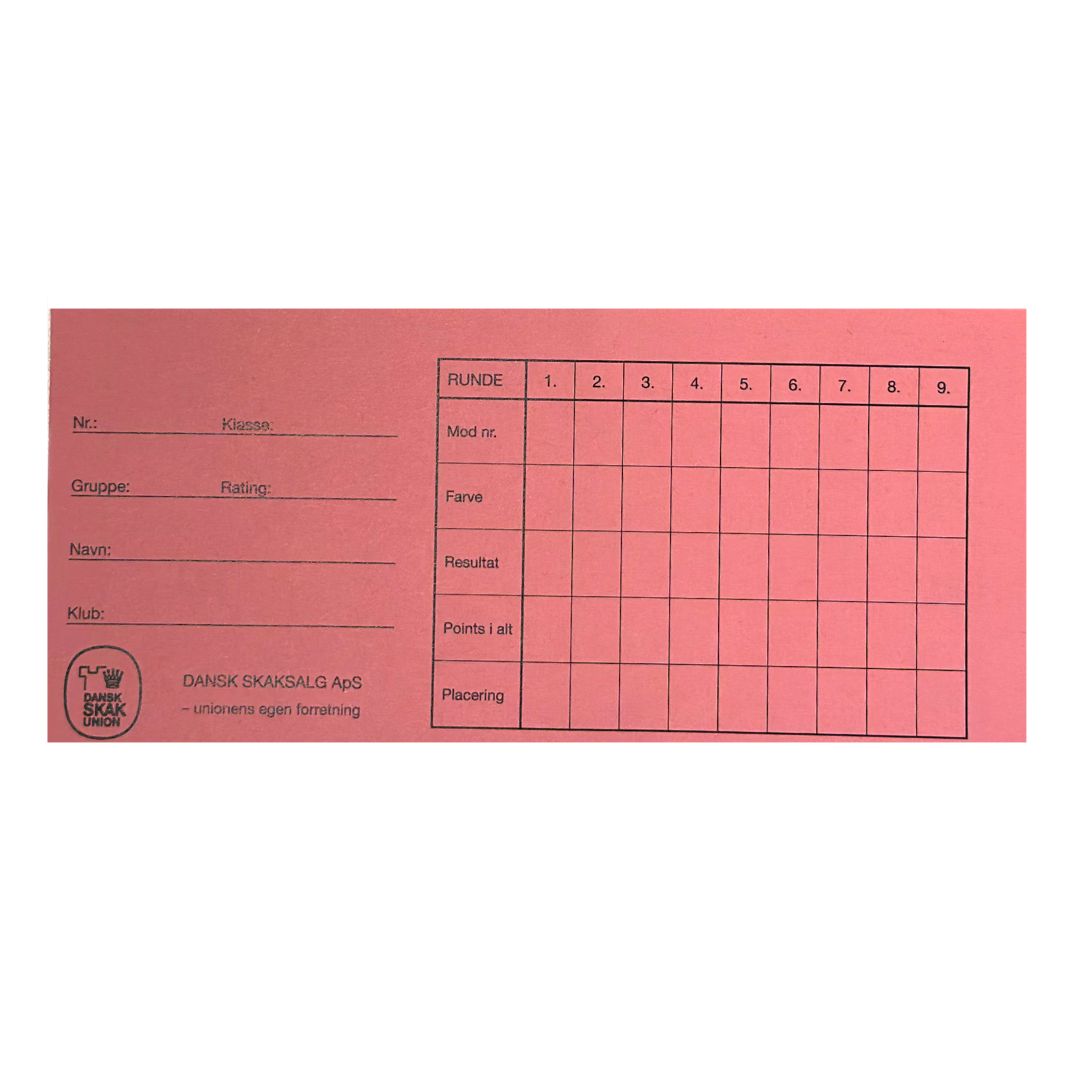 Rondkort i buntar om 100 st. Används för partier och turneringar, bland annat till att lotta Monrad upp till nio ronder. Finns i flera färger enligt anvisningarna.