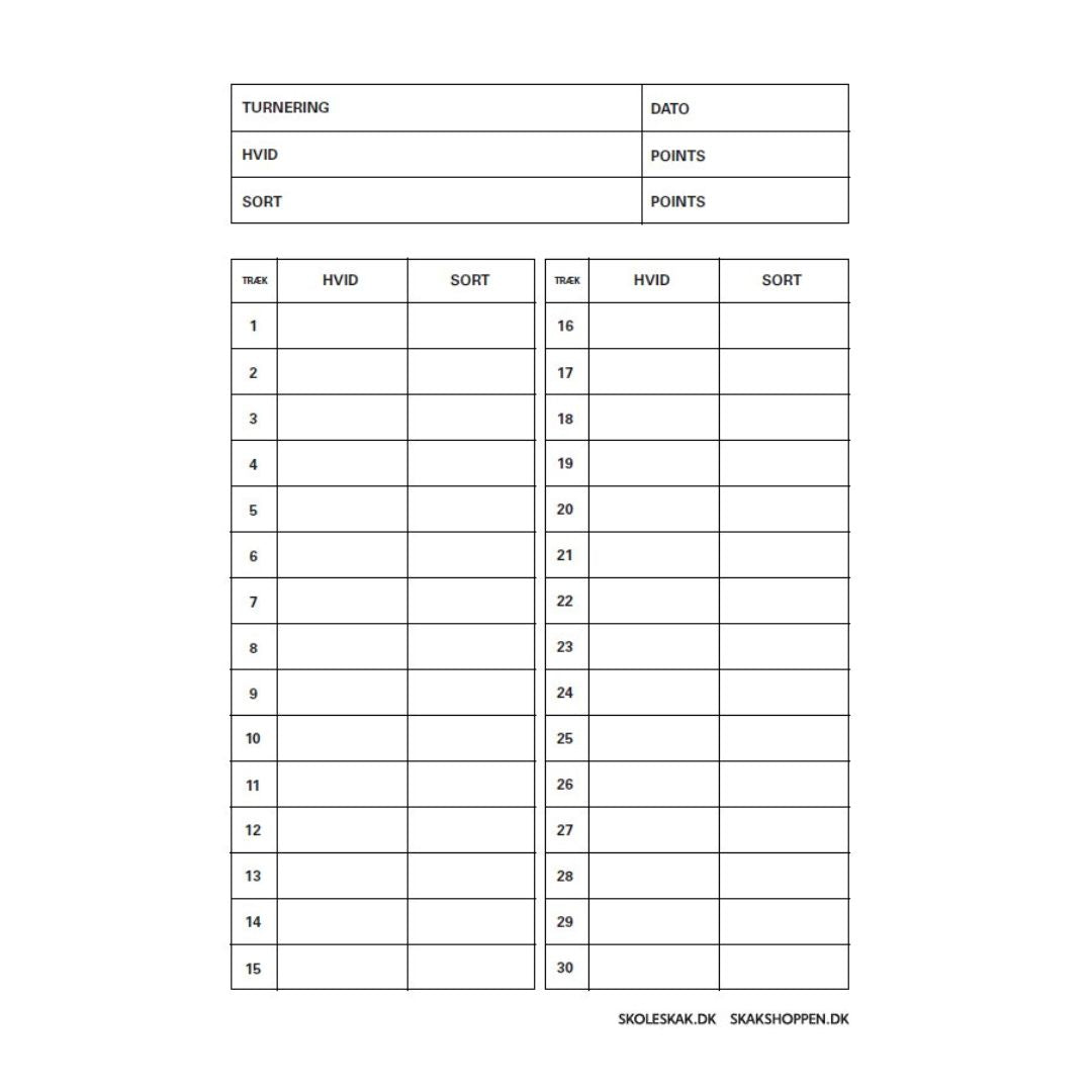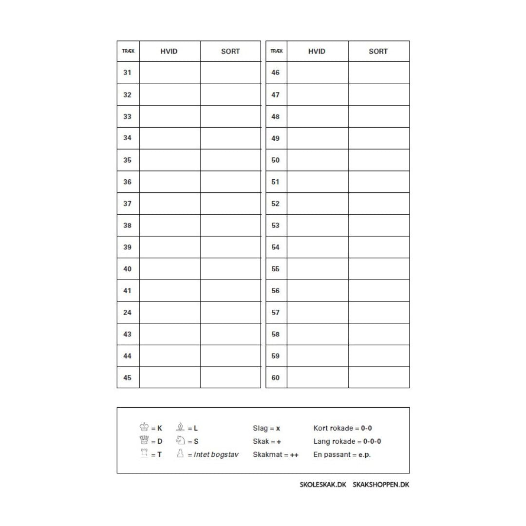 - A5 schackprotokoll för 60 drag.
