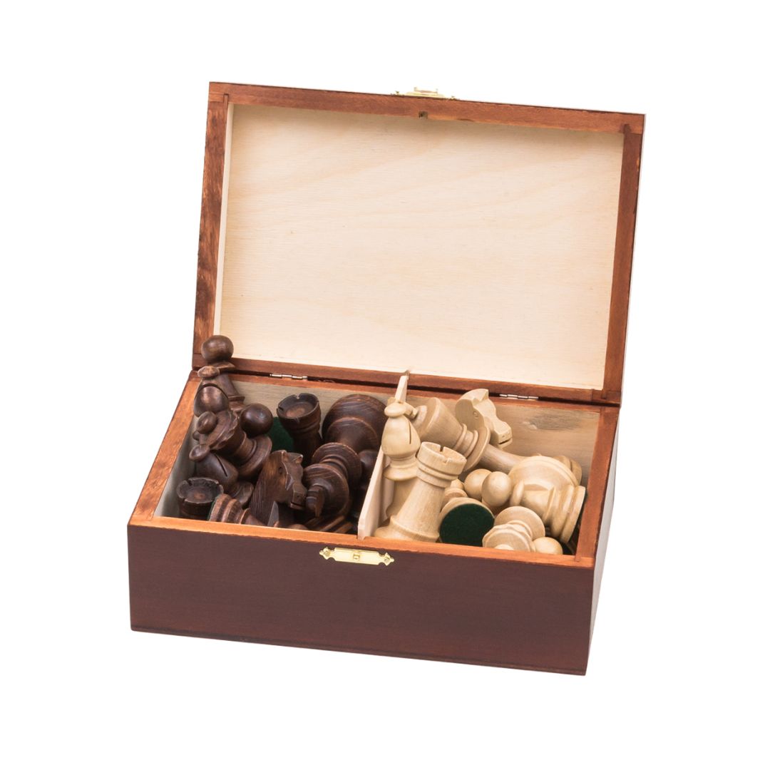 Staunton-schackpjäser i trä - inkl. trälåda (avenbok)