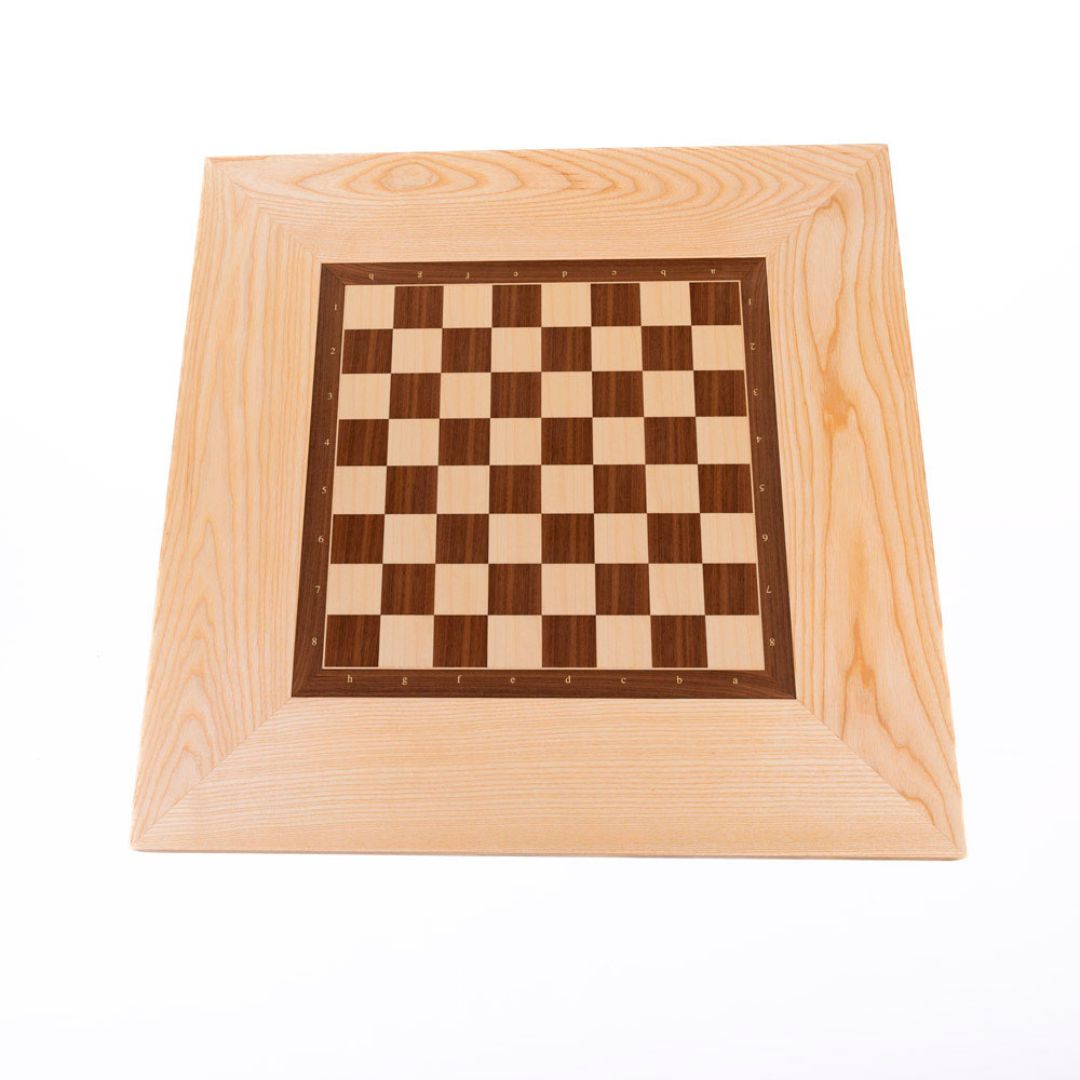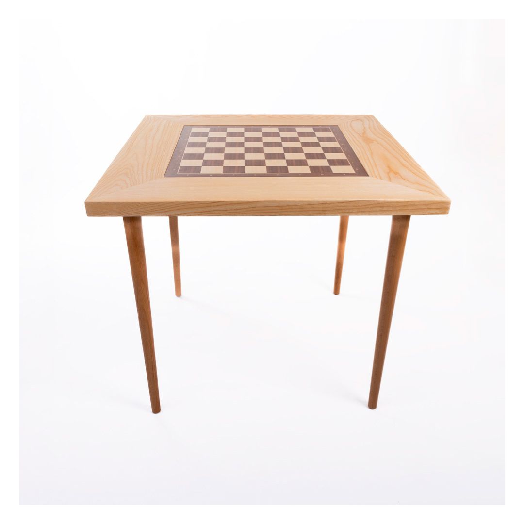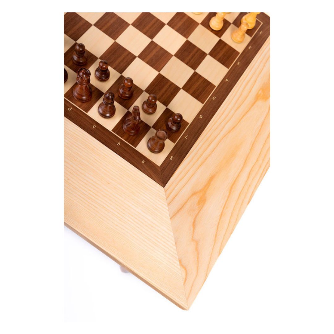 Ett exklusivt danskt handgjort schackbord av ask. Bordet är oljat och kommer med två set ben i olika höjd. Sedan kan du själv bestämma om schackset ska stå i höjd med matbordet (70 cm) eller soffbordet (50 cm). Benen är gjorda av bokträ.