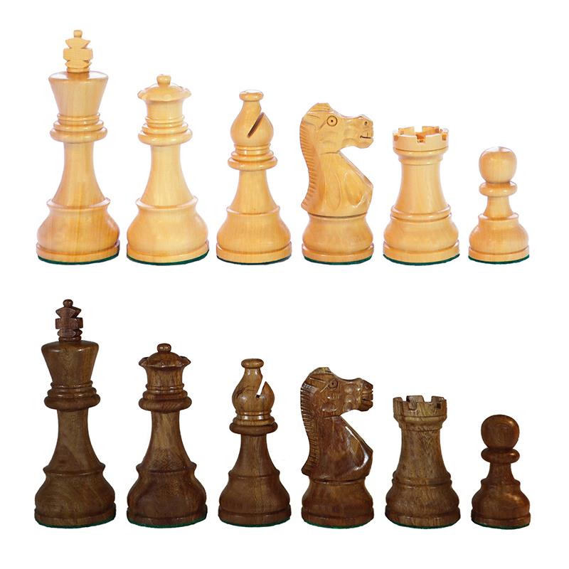 Pjäserna är tillverkade av högkvalitativt trä och är handskurna av skickliga hantverkare. De har en klassisk och tidlös design med en fransk springare som ger en elegant touch till setet. Den tunga basen på varje pjäs ger stabilitet och den fina finishen gör det lätt att skjuta dem runt brädet.