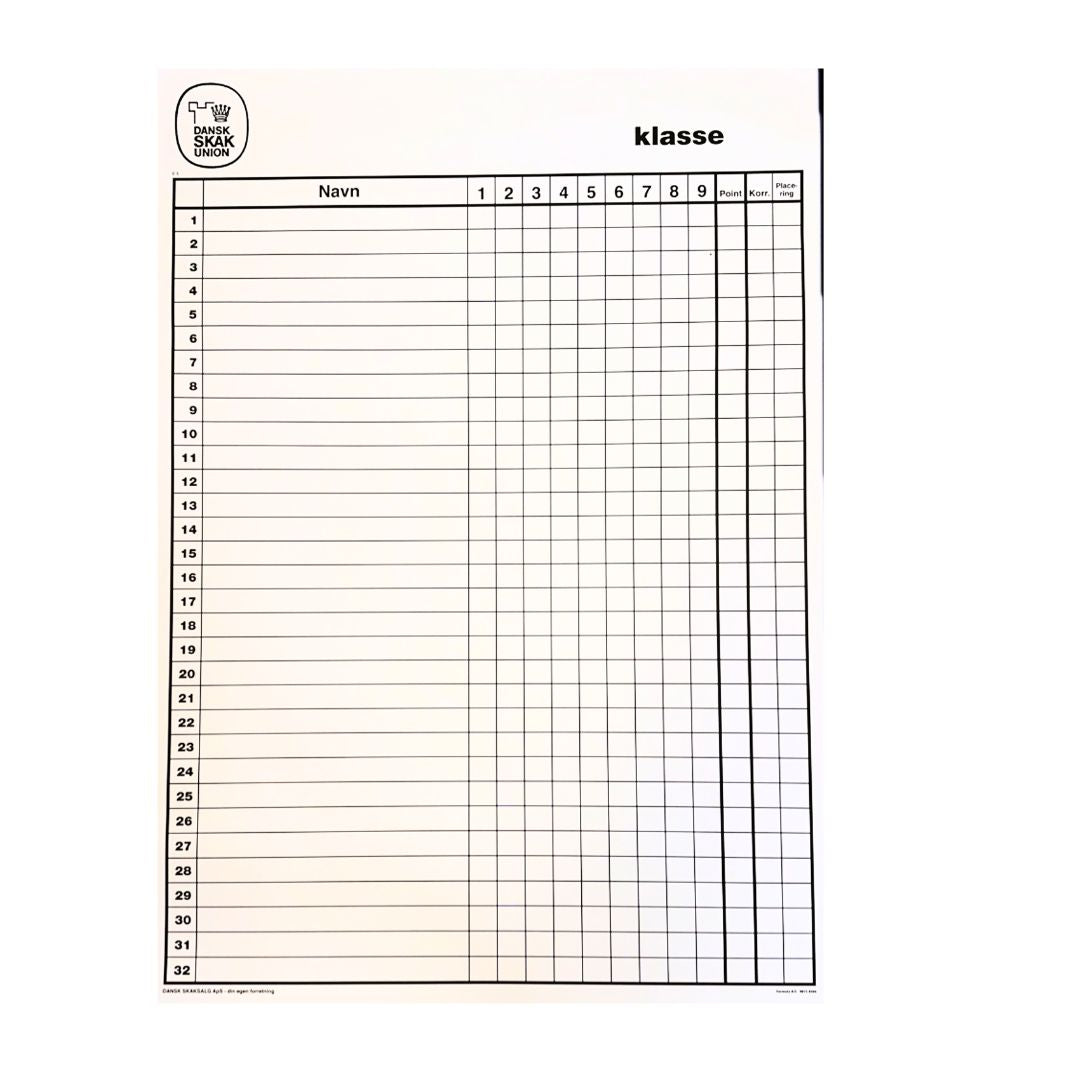 Detta schema har skapats för de riktigt stora turneringarna med upp till 32 deltagare! Tavlan är lämplig för turneringar som äger rum över upp till 9 omgångar.