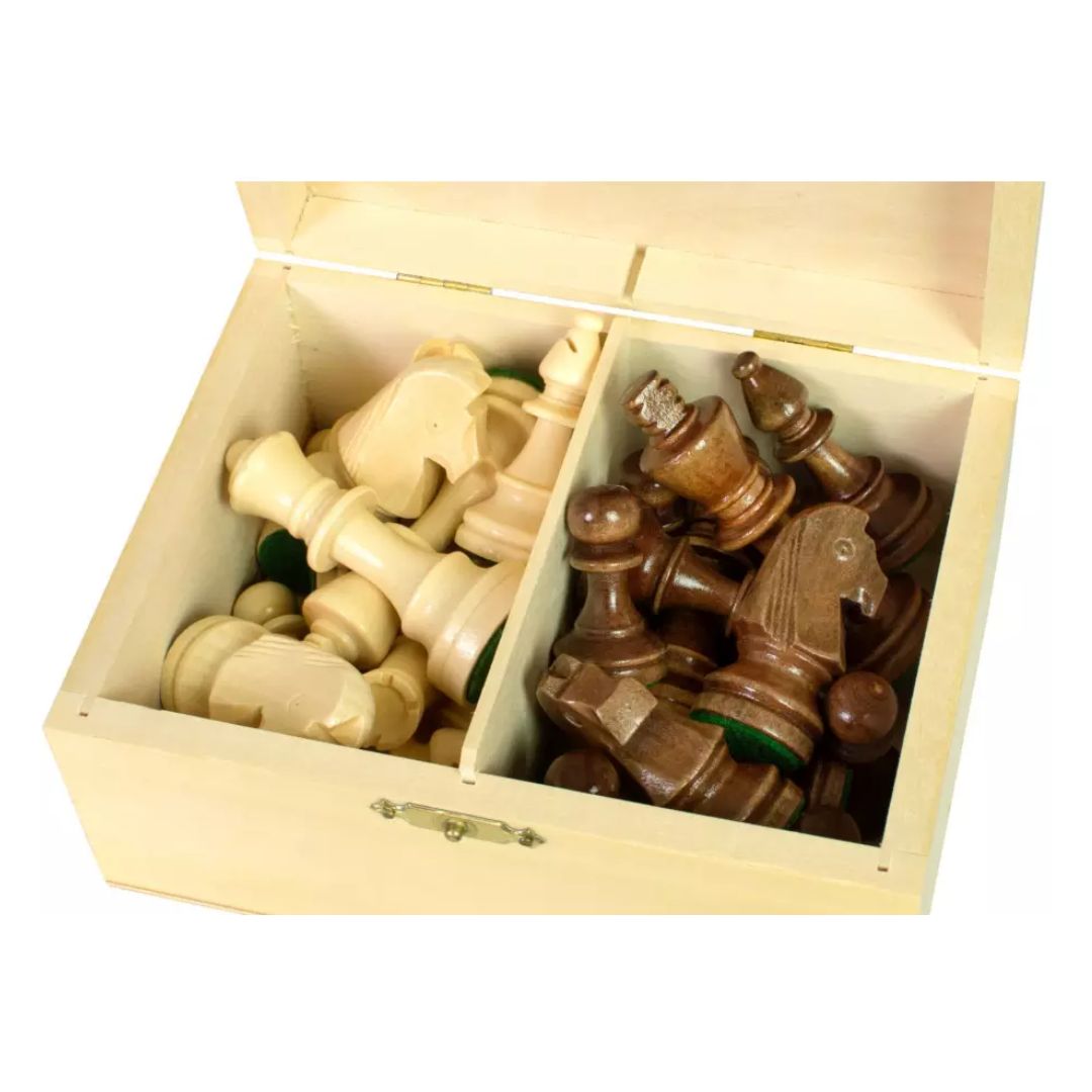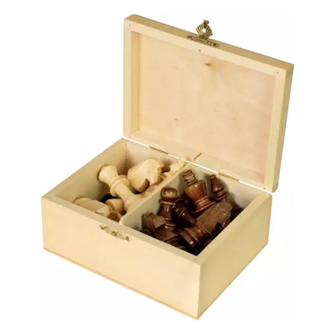 Staunton-schackpjäser i förvaringslåda (Avenbok)